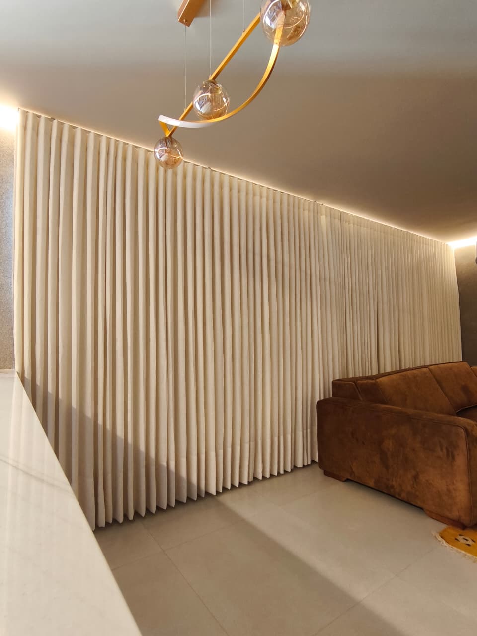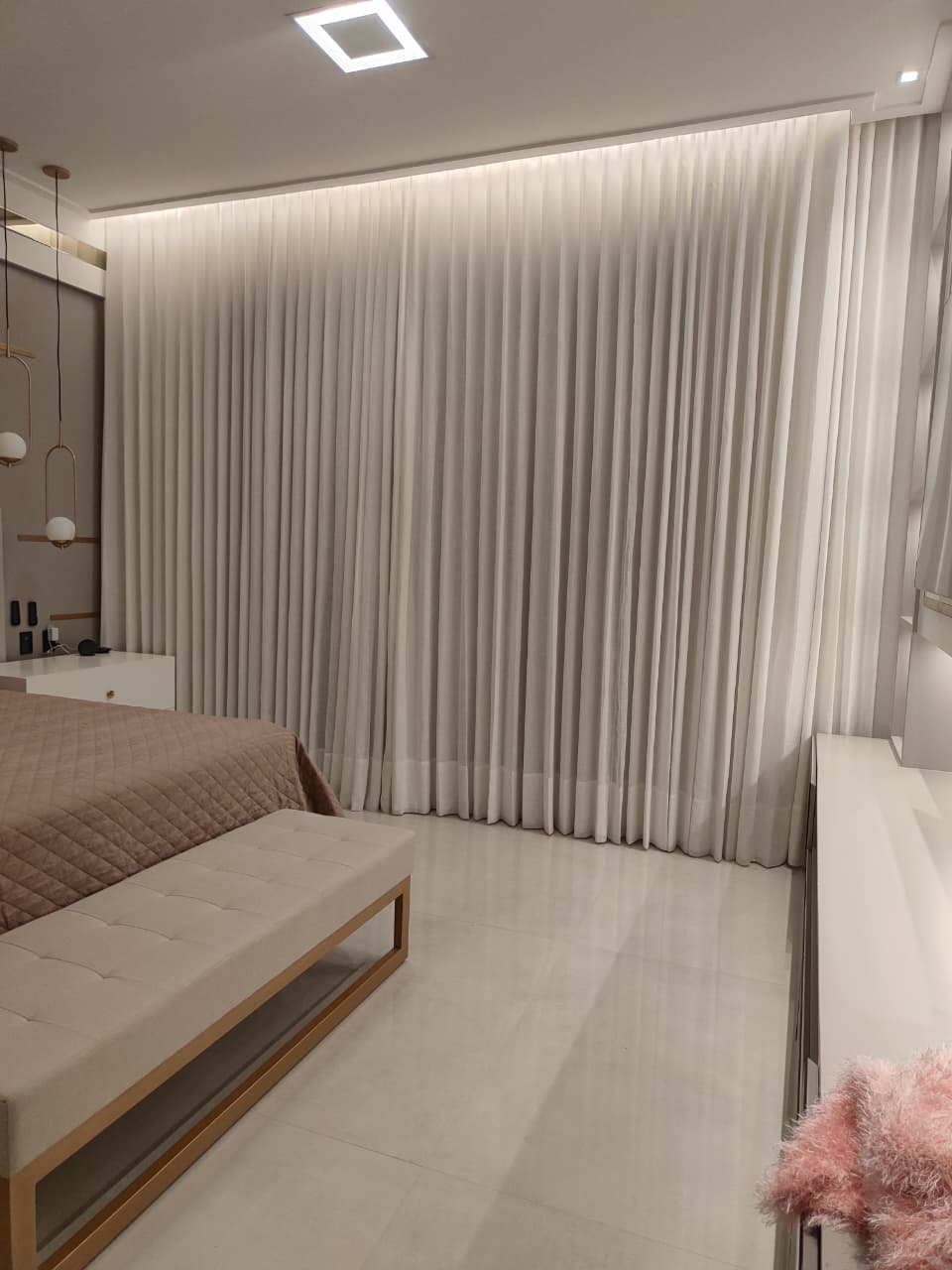 O resultado é uma cortina de tecido personalizada, planejada para unir precisão de medidas, qualidade no acabamento e funcionalidade adequada ao projeto.