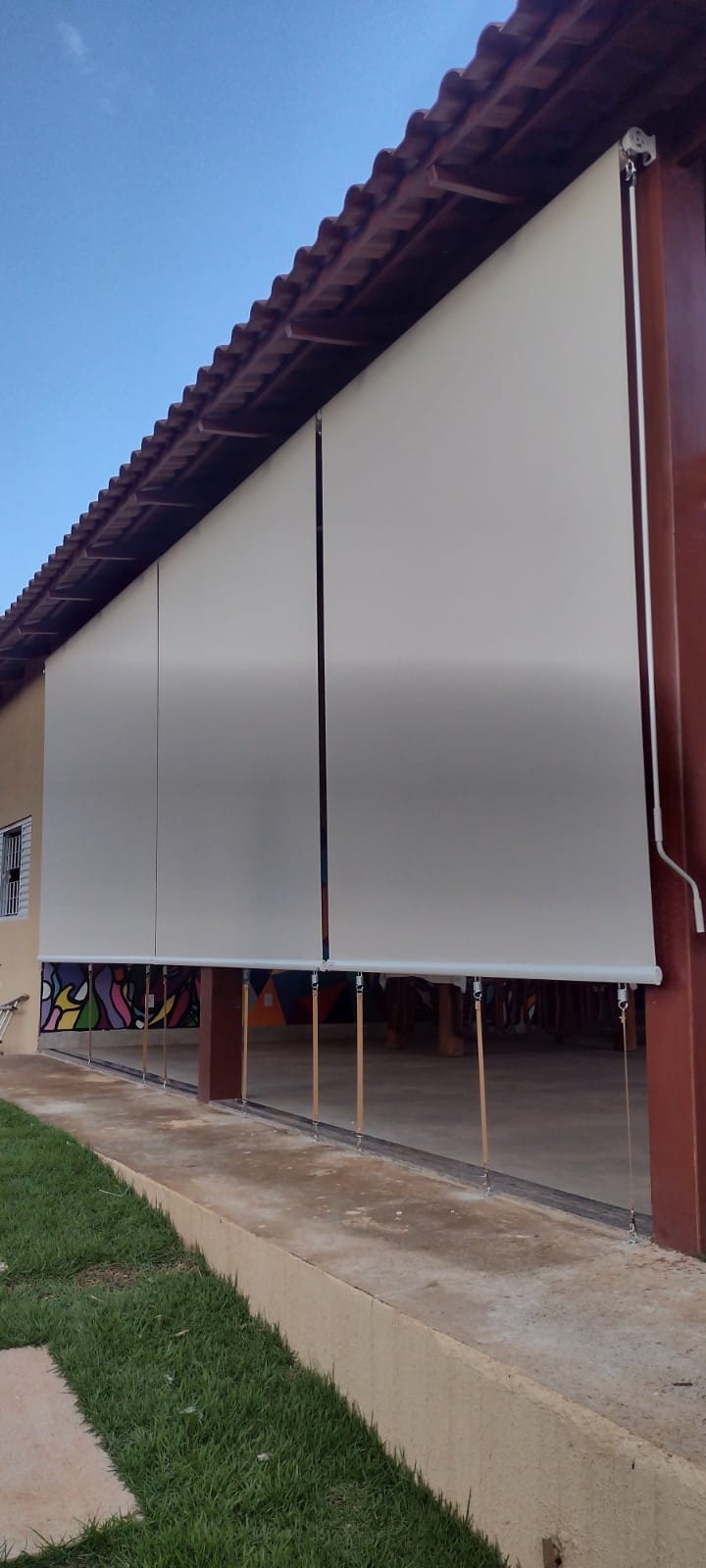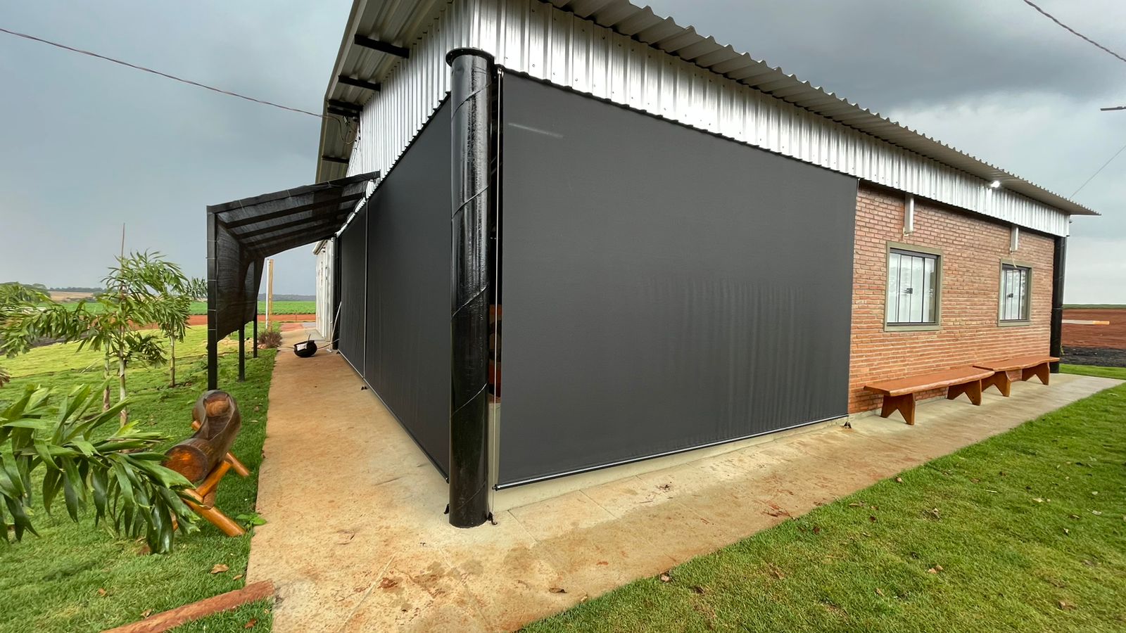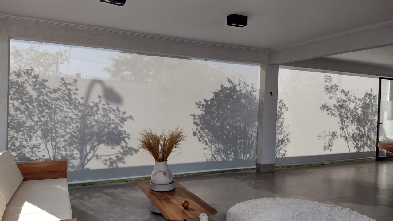 Pode ser produzido em lona ou tela solar com proteção UV, ajudando a controlar a entrada de calor e mantendo o ambiente mais fresco e confortável.