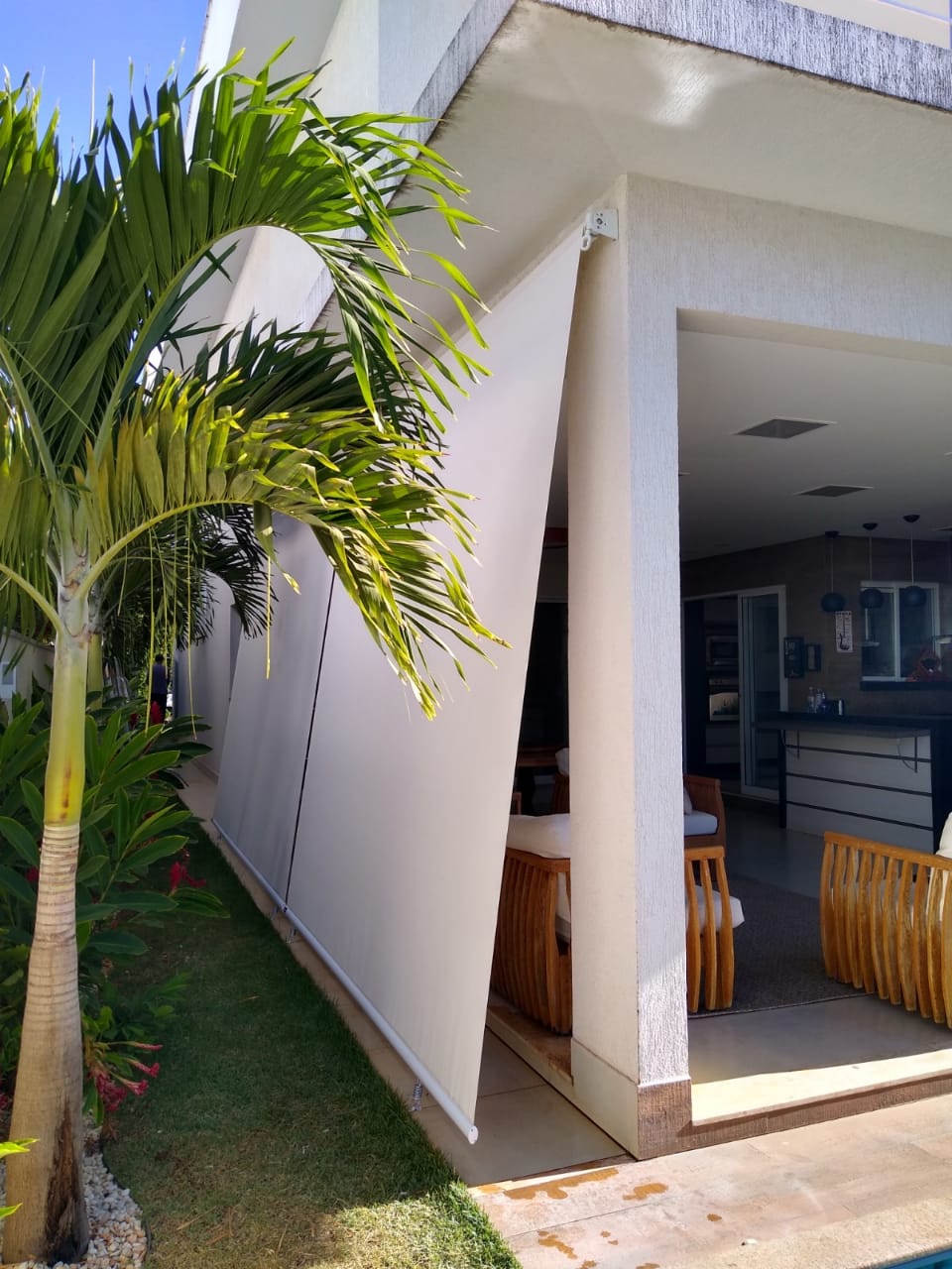 Além de valorizar a fachada, o toldo vertical garante privacidade, conforto e proteção para áreas externas e internas.